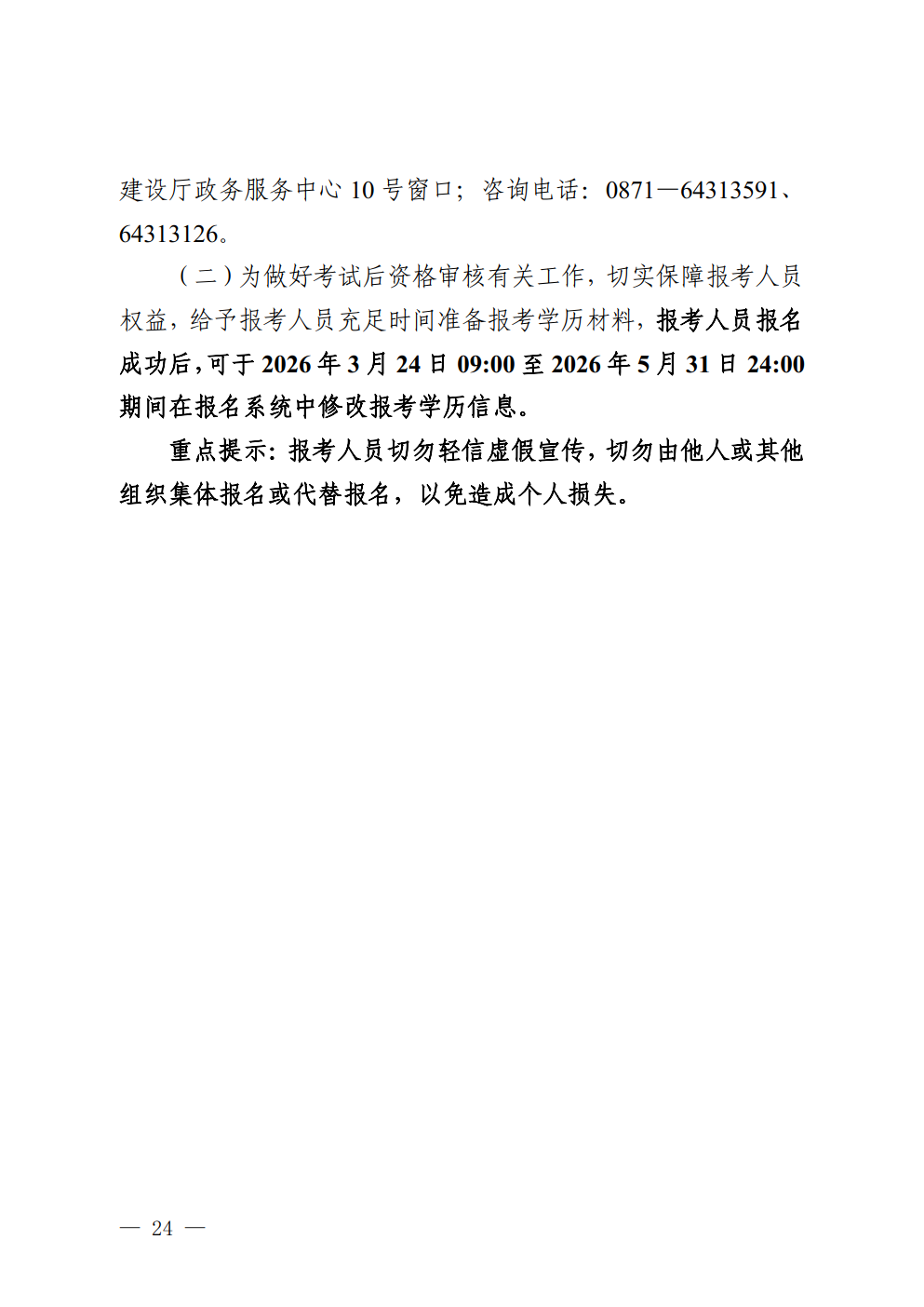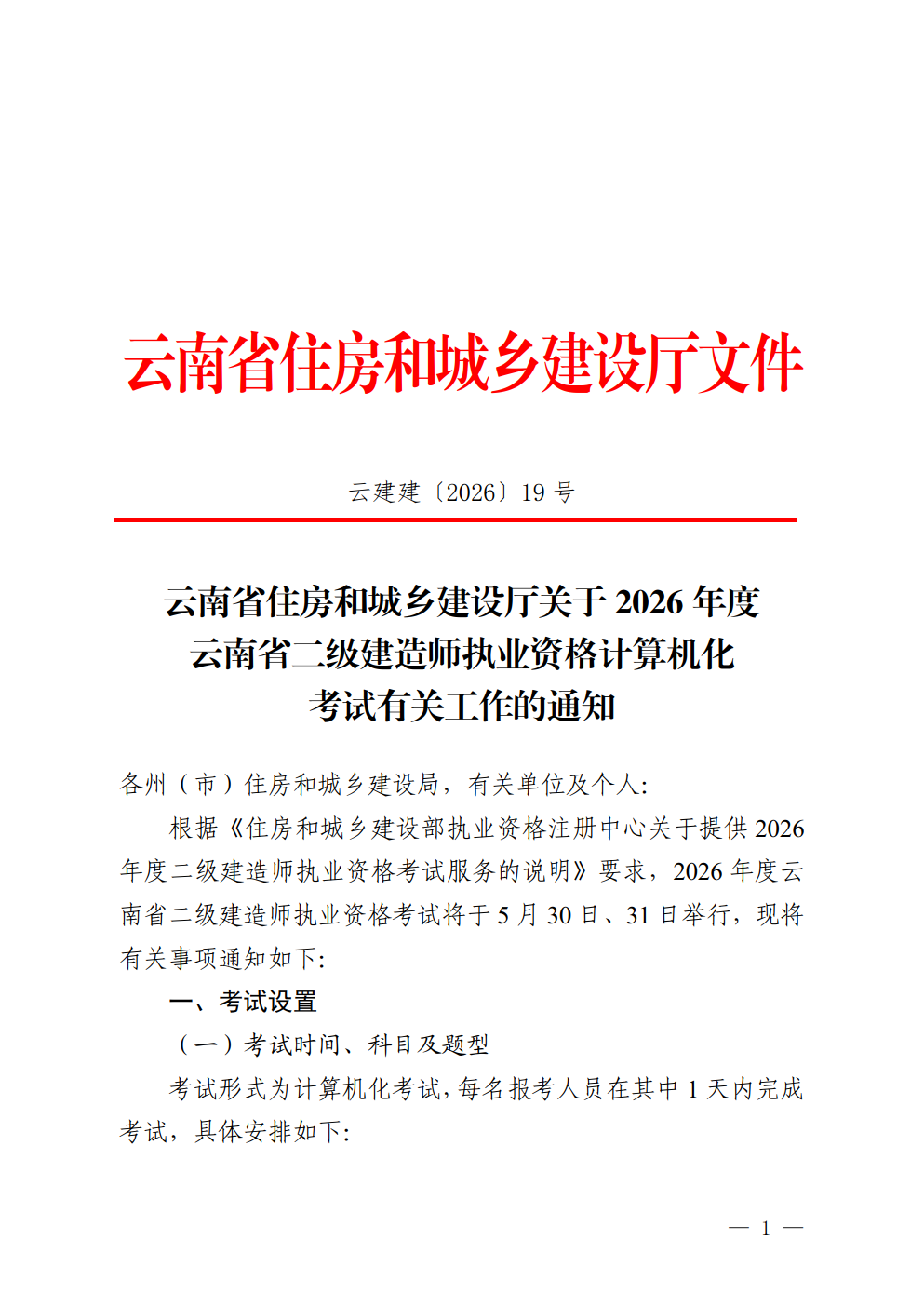 转发:关于2026年度云南省二级建造师执业资格计算机化考试有关工作的通知