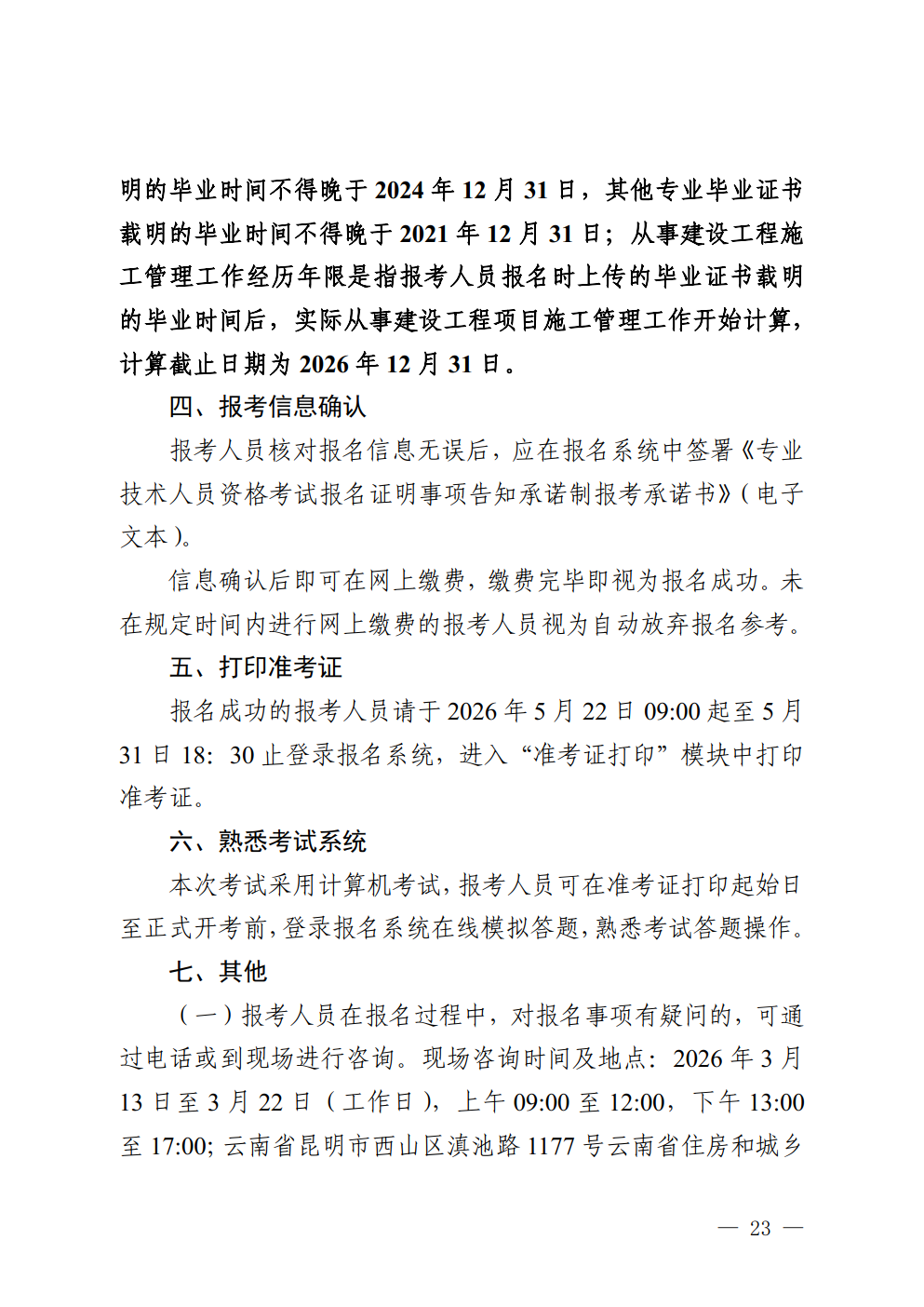 关于2026年度云南省二级建造师执业资格计算机化考试有关工作的通知